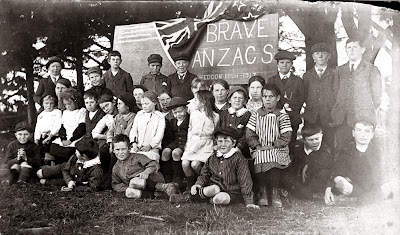 | "Brave ANZAC's", Heddon Bush School Children, Southland, New Zealand. Taken Apr 1917 [From my own Collection] |