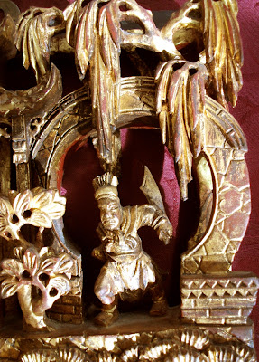 Ever the 'eclectic collector', I have now owned these two antique 15½ x 9 inch Chinese decoratively carved gilt-wood panels for just over ten years, having been purchased at an antiques fair. As 'impulse' buys go I am still well satisfied. Their original provenance is unknown but a vast quantity of Chinese heritage has been scattered to the four winds after the upheavals which have racked China over the last 100 years. The losses to traditional Chinese heritage and arts during the great 'Cultural Revolution' of 1966-1976 alone were quite substantial. But thankfully the tide has well and truly turned.