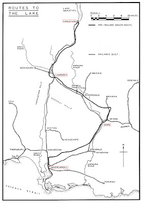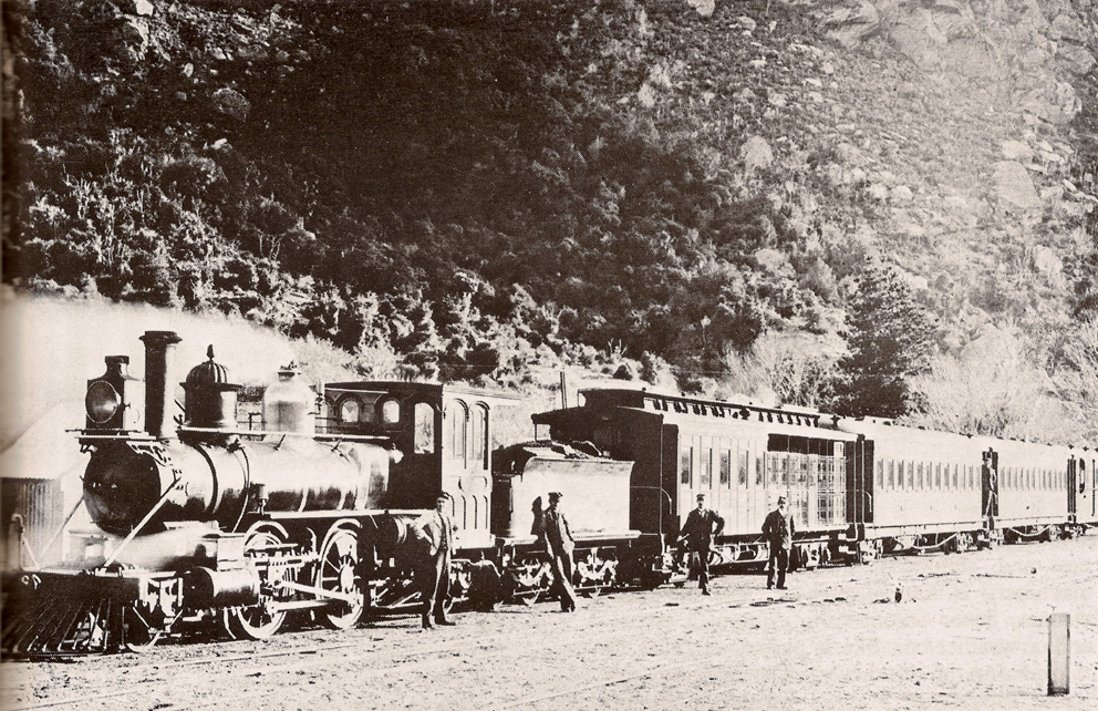 Having been 'cascaded' from the main line, these decidedly light and spindly looking but surprisingly sprightly Rogers 2-4-2 locomotives with [then] distinctive "wagon top" boilers and looking more like something out of the American Wild West were ideally suited for light 'express' trains, having become famed for their quick turn of speed. They could also easily out-run any equivalent British made locomotive. The 'Rogers K' class thus proved eminently suitable for this predominately flat line, faithfully serving up until the 1920's. Passengers would transfer onto one of the lake steamers at Kingston wharf to continue their journey onto Queenstown.