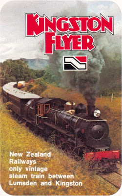 The Waimea Plains line between Gore and Lumsden was finally severed in April 1970 with the closure of a substantial part of the route. But local protestations against the impending closure of the branch line from Lumsden to Kingston were convincing. Promises of continued support spurred the then sympathetic Minister of Railways, The Right Hon. JB (Peter) Gordon to quite creatively devise a tourist steam train service based on the old "Kingston Flyer". The service over the 38 mile route would also operate as a mixed train, thus satisfying local freight requirements. Thankfully, two 1920's AB class Pacific steam locomotives along with sufficient vintage wooden carriages dating from 1900 to 1923, including a very rare 'birdcage' compartment carriage, were still in New Zealand Railways ownership and able to be lovingly refurbished. A new station building had to found for Kingston and part of the Riversdale Station on the old Waimea Plains line was found to be suitable. The first run of the new Flyer service ran on the 21st December 1971, operating each Summer season thereafter. The principal locomotive driver from day one was Russell Glendinning who is still associated with this vintage train. The now historic 1975 New Zealand "National Film Unit" film featuring the Kingston Flyer, "A Train For Christmas", can be viewed Here.