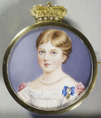 | A miniature of the young Princess Alexandrina Victoria of Kent (the future Queen Victoria) as she appeared around 1826-27 [Source : The Royal Collection] |