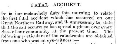 But an unfortunate accident occurred the day before the opening when Alfred Gasket [later recorded as "Glascott"], a 17 year old railway employee, "slipped between the engine and the tender" of the slow moving train and with his head resting on one of the rails was hit with one of the guide wheel axles and instantly killed. His "carelessness of manner" in standing on the tender was a contributing factor. This did not bode well, also being New Zealand's first recorded railway fatality.