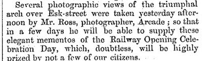 An official opening of the "Great Northern Railway" took place in mid October 1864 but a furore developed as only management and their official guests could take part in the festivities. Towns people gathered to "heartily groan and boo" as the train left the station. So they organised their own "do"! Suitably chastened and contrite, the Council organised a 'public' "Railway Opening Celebration Day" for the following week on Tuesday, the 25th October 1864.
