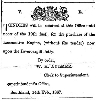 | Tenders invited for the purchase of one of the 'Crampton" locomotives, 14th February 1867 |