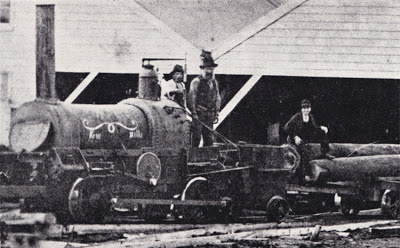 The "Lady Barkly" appears to have quickly been converted to drive a sawmill but still capable of running on rails as the image above shows. Originally built at the "Irish" broad gauge of 5'3", she was converted to the standard gauge of 4ft 8½ inch for the Southland "Wooden Railway", then finally converted to the narrow 3'6" gauge.