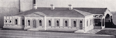 | A model of Invercargill Railway Station, complete with overall roof. A veranda would later be added. |