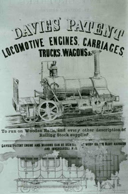 | Advertisement for "'Davies' Patent Locomotive Engines, Carriages, Trucks, Wagons &c.", circa 1861 |
