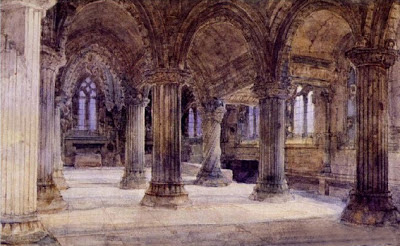 | Interior view of Rosslyn Chapel by David Roberts, 1828 |