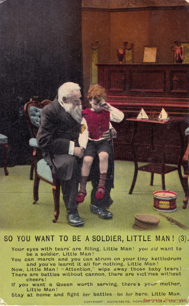 | "So you want to be a Soldier, Little Man!"- a First World War era postcard from 1914 |