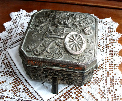 | A small silvered metal jewellery box, which, according to my mother, was purchased by my grandfather while in Japan [From my own collection] |