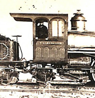 | An unknown driver (but reputed to be Ben Verdon) on the footplate of K88 "Washington" in 1878 [Source : Upper Hutt City Library] |