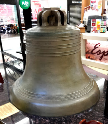 | The large 25 cwt. bronze Clock Bell cast by "Bryson" of Edinburgh in 1863 which, until Sept 2017, was located in the Meridian Mall. [From my own collection] |